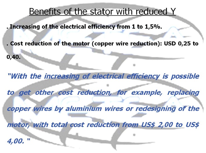 Benefits of the stator with Y reduced. Increasing the area of electrical steel therefore increases the magnetic flux between the rotor and stator. The dimensional of the Y must exceed the minimum air gap (distance between rotor and stator).